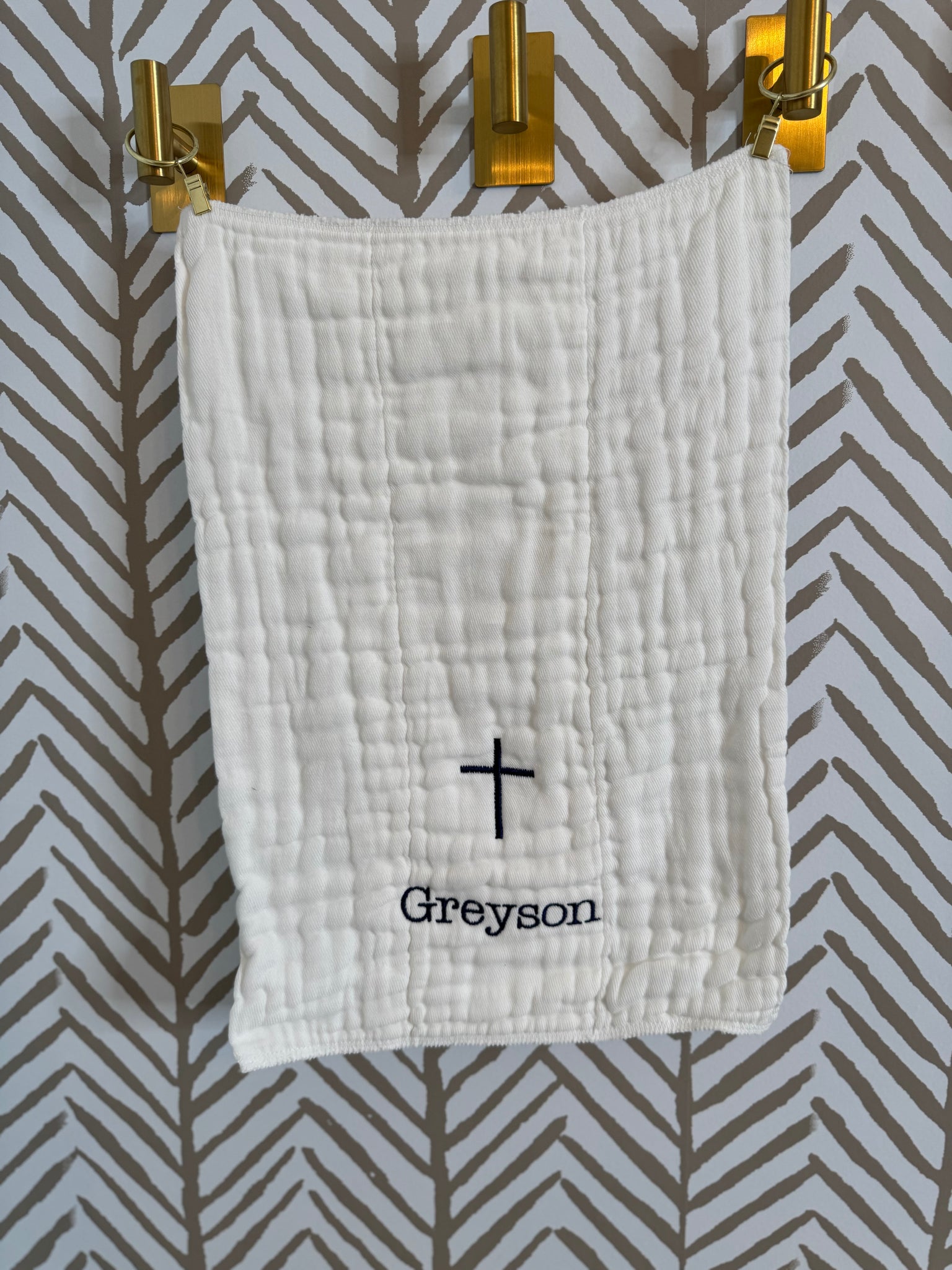 Burp Cloth - Plain burp cloth with cross and name embroidered.